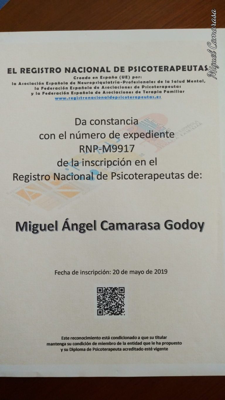 Afiliación con Federación Española de Asociaciones de Psicoterapeutas / RNP-M9917